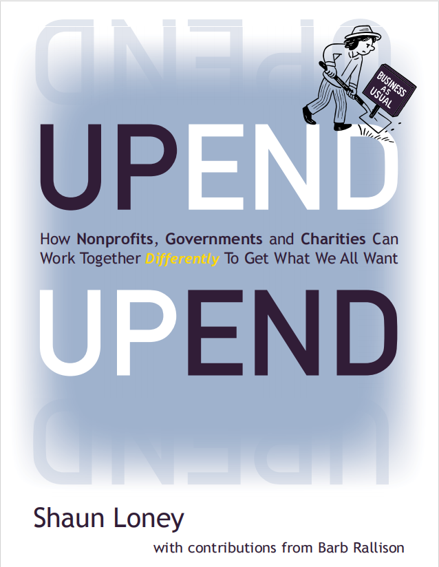You can also download a free copy of my most recent publication (which I co-wrote with Barb Rallision from The Institute for Community Prosperity in Calgary called UPEND: How Nonprofits, Governments and Charities Can Work Together Differently To Get What We all Want. Feel free to print your own copies of UPEND and share it around.